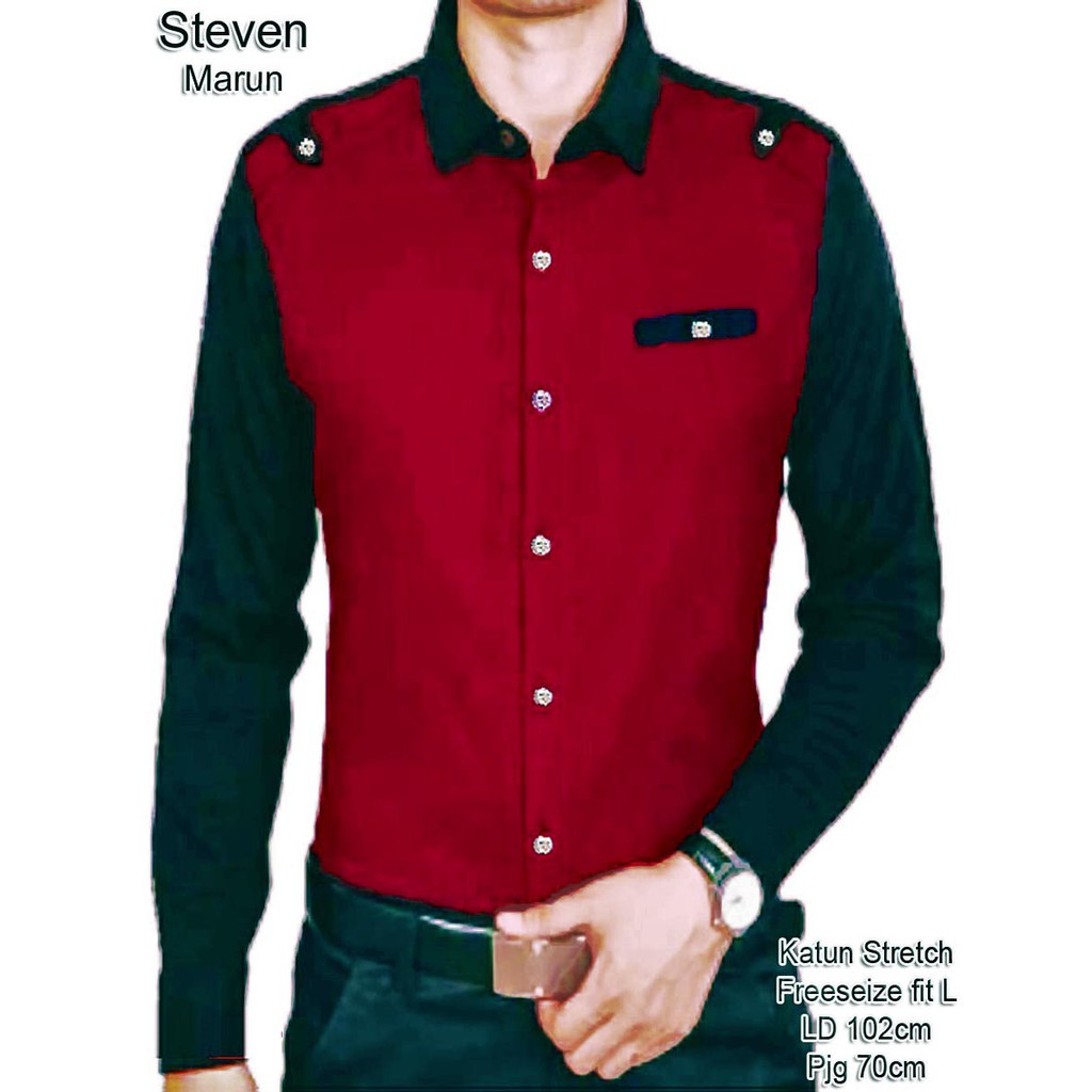 Melly81 Kemeja Pria Steven Merah Marun Baju Cowok Men Sale Style Model Pakaian Lelaki Handsome