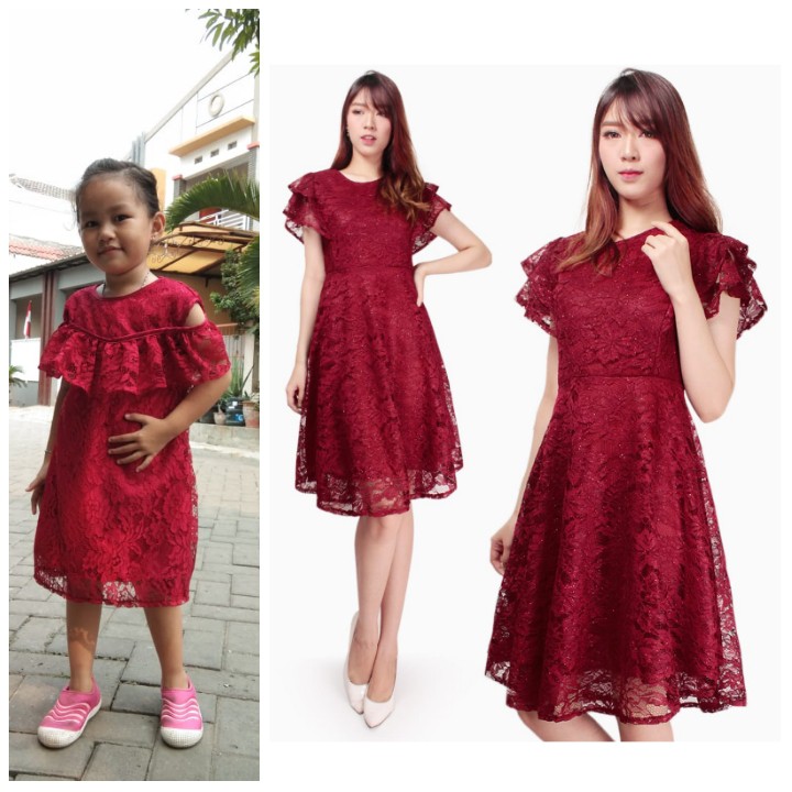 Couple Dress Midi Mikha Natal Imlek Ibu Dan Anak Wanita