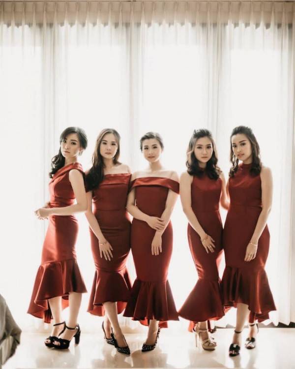 10 Inspirasi Model Gaun Bridesmaid Berbahan Satin Anggun