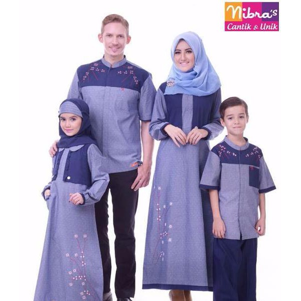 Baju Keluarga Nibras Sarkel 30 Biru Sarimbit Muslim Model Baju Sarimbit Ayah Ibu Anak