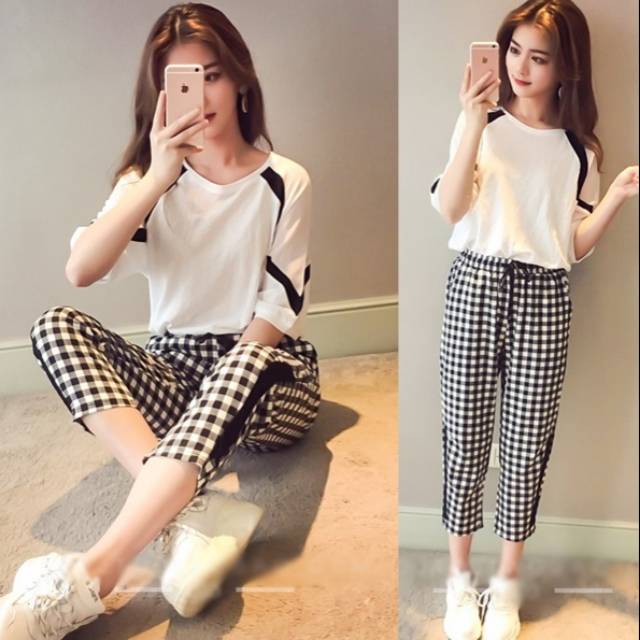 Setelan Zara Squarelly Hitam Dan Putih Fashion Wanita Cantik Model Terbaru